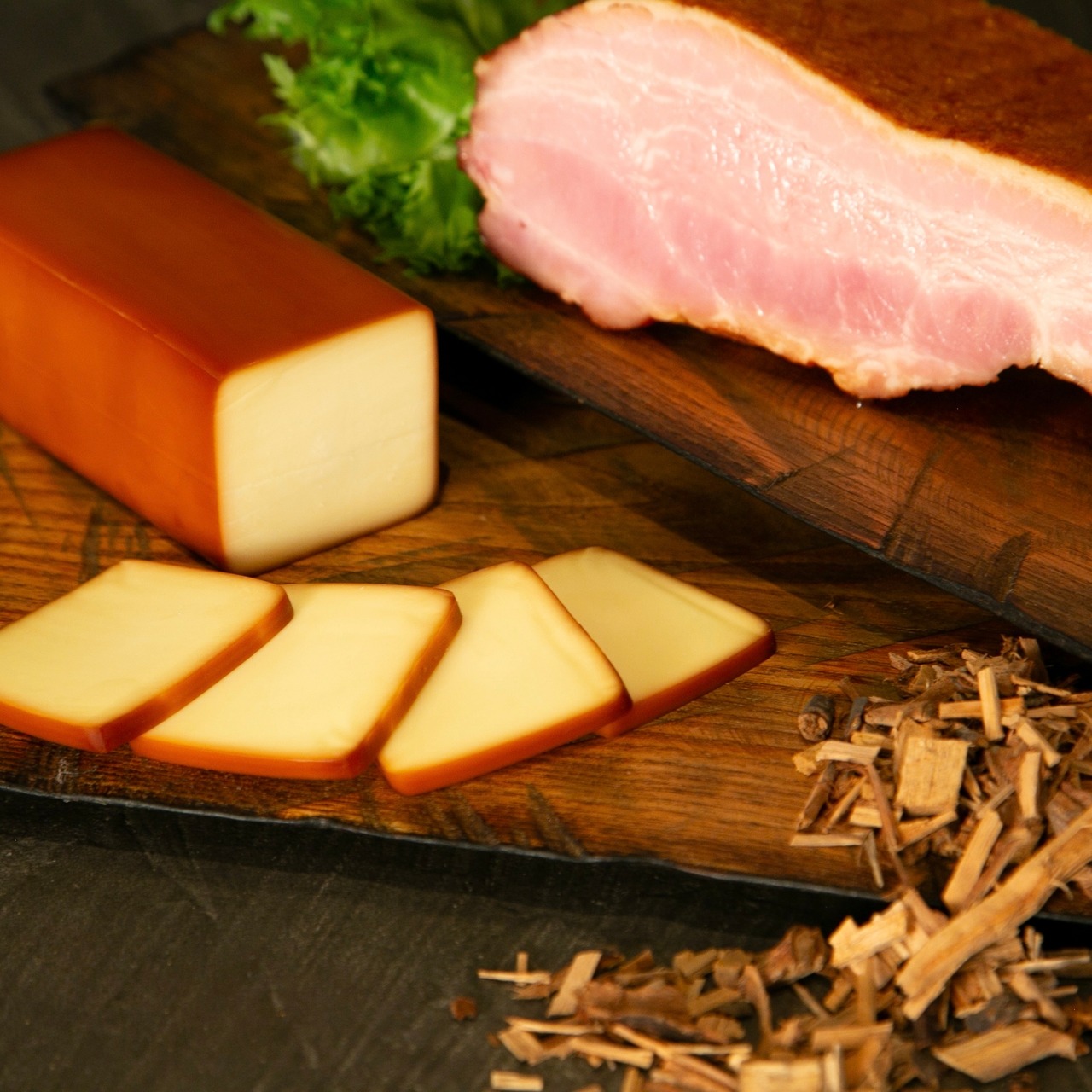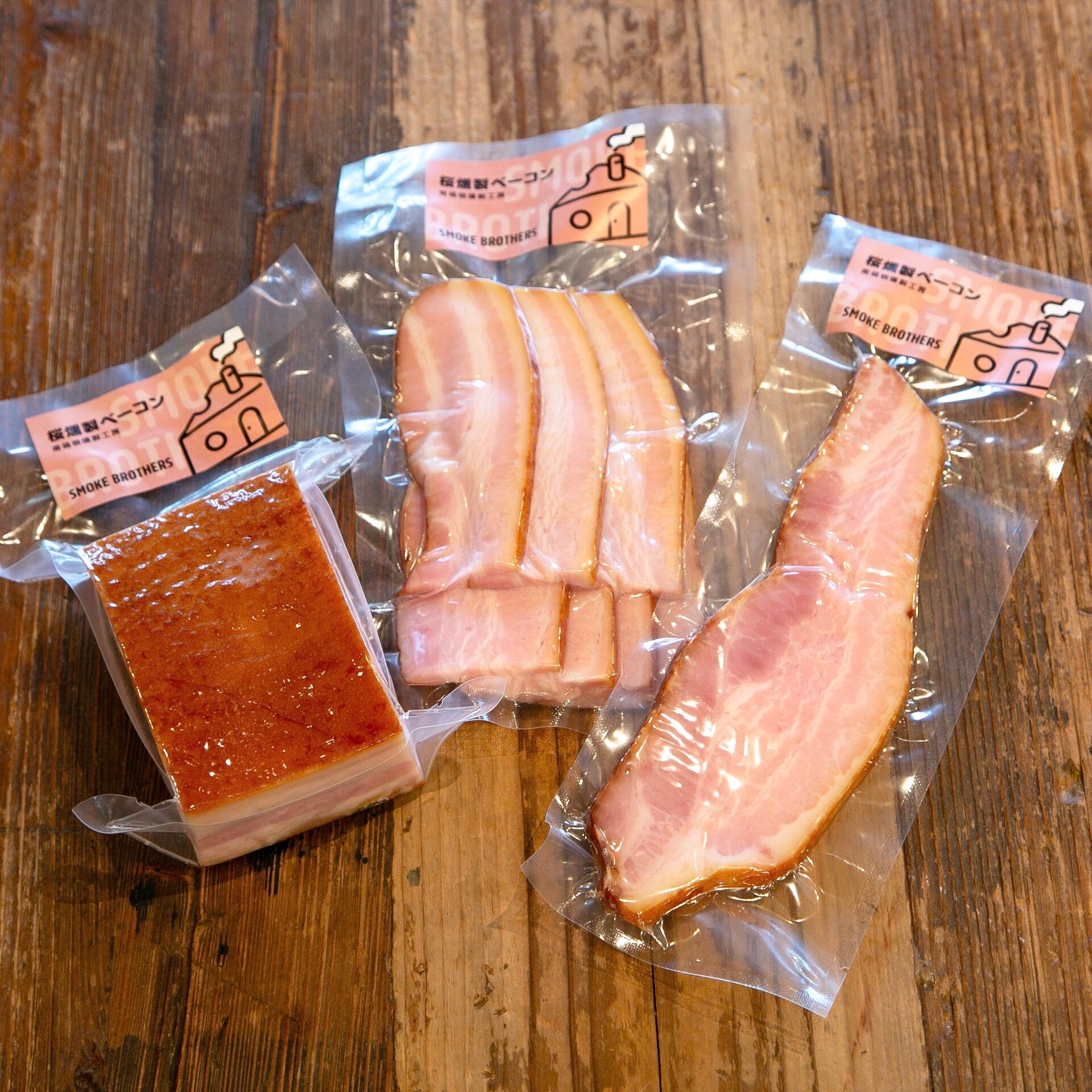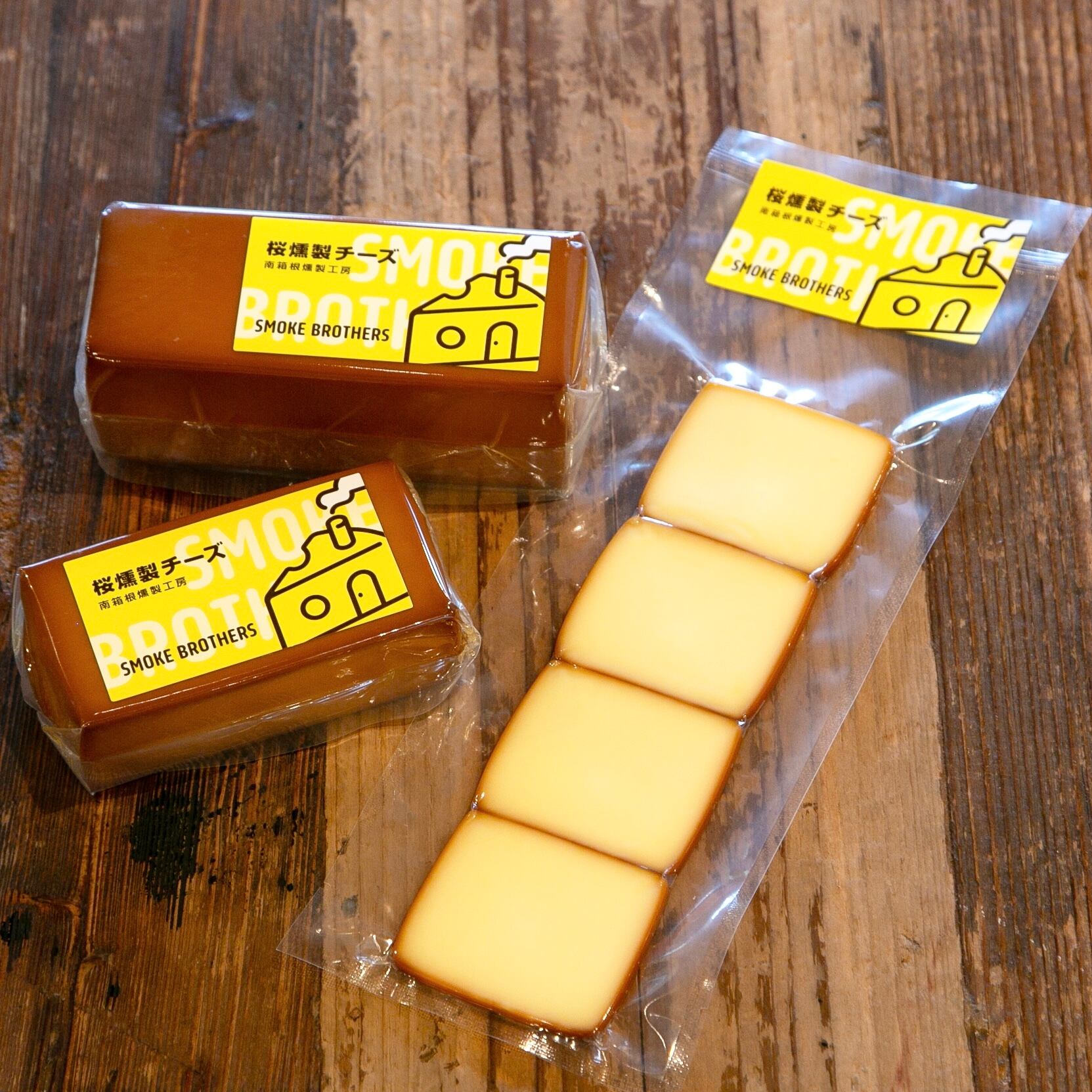 桜燻製チーズのロングサイズ360gと桜燻製ベーコン300gの2点セットです。